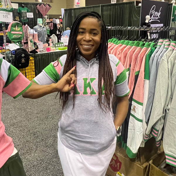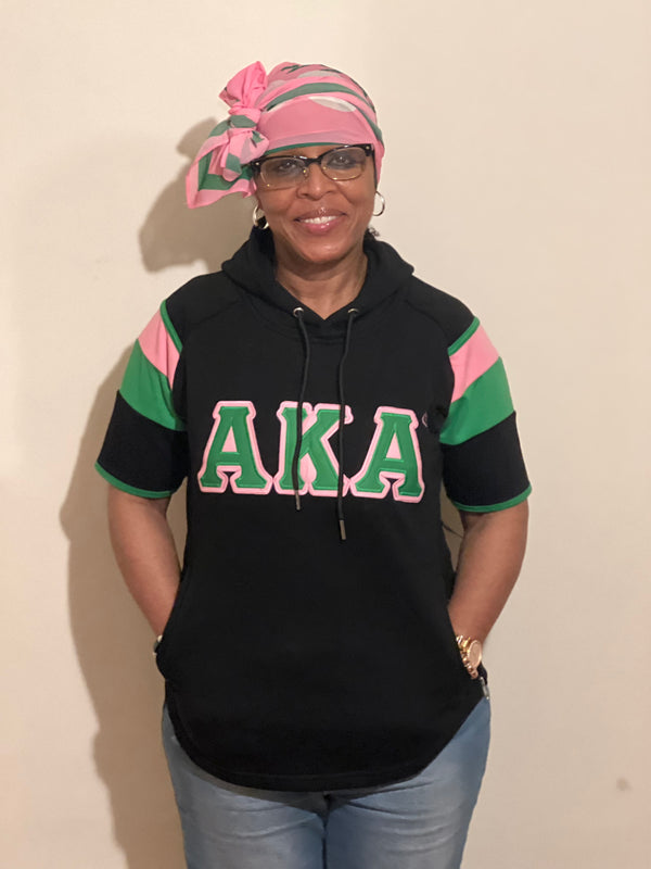 AKA Pink Hoodie (Unisex Size)Unisex sizing, model wearing M Embroidered logos - Knit Ribbing -Satin lined hood