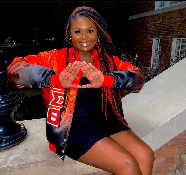 Delta White Satin Bomber Jacket Custom Ribbon And LiningUnisex Fit -Satin Material -Red Custom Ribbing 1913 -Red Buttons -100Grams Filling Quilted Lining -Embroidered Logos -See Size Chart Below