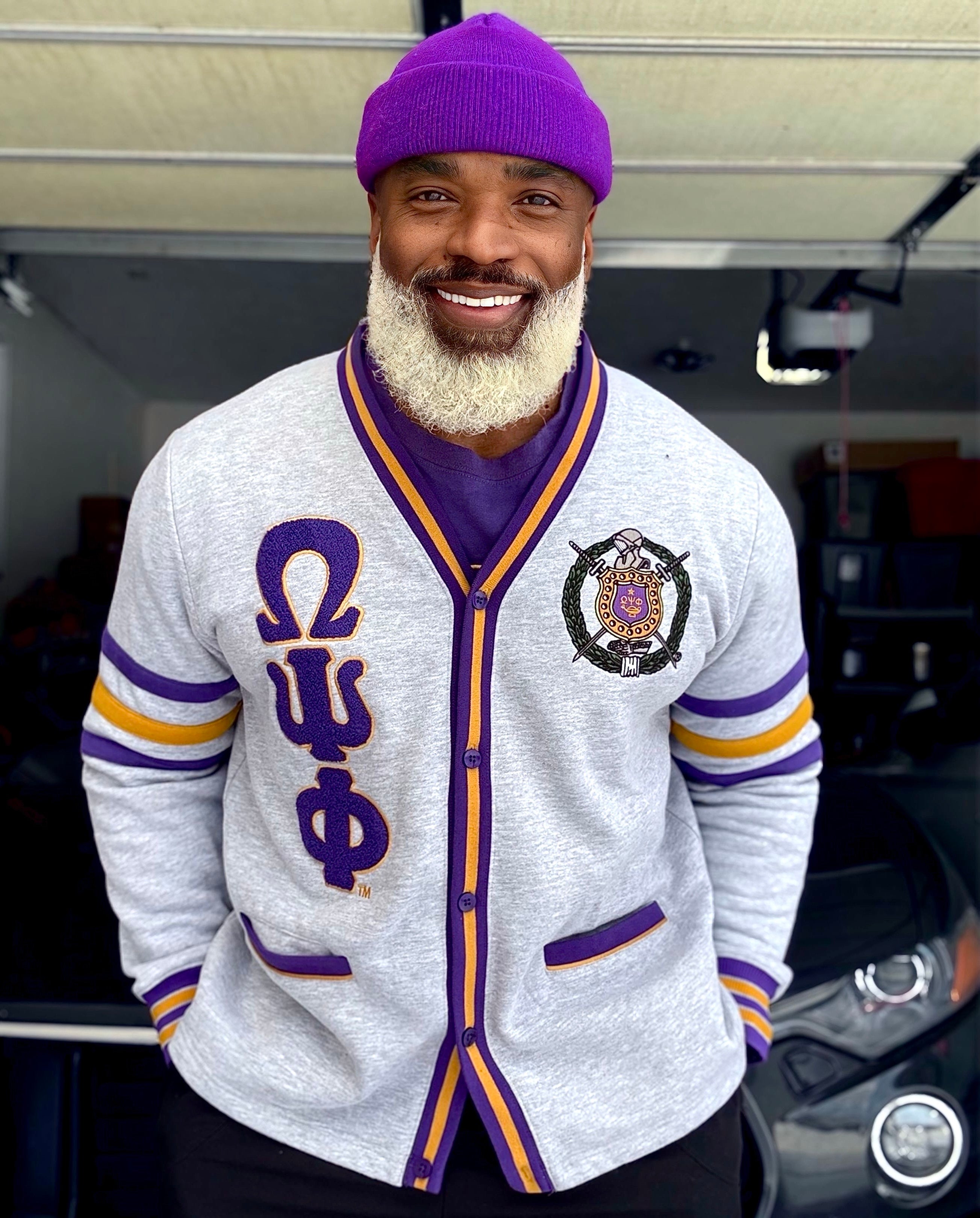 I originally want d this sweater in purple but my size was sold out. Bought the grey instead. After seeing it in person the grey with the purple and gold touches are really nice. It’s fits nicely and the quality is top notch.I’m glad I decided to make this purchase.